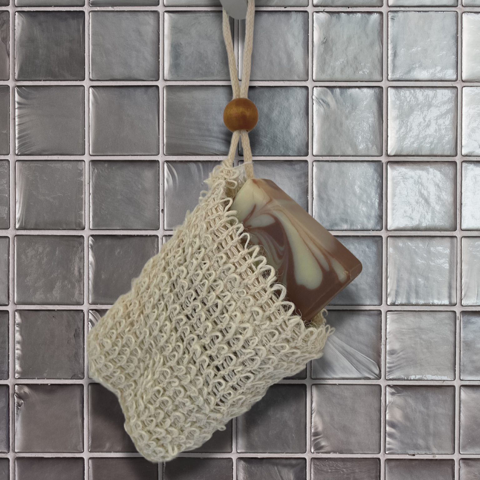 La sua struttura è studiata per accogliere perfettamente il tuo sapone. Basta inserire il sapone, stringere il cordoncino e bloccarlo con la perla in legno, garantendo così una chiusura sicura durante l'uso.